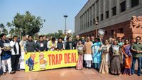 The Congress party is protesting, alleging that the Modi government made a 'trap deal' with the U.S., sacrificing Indian farmers' interests due to pressure related to the Epstein files.
