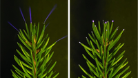 During thunderstorms, trees can glow with a faint ultraviolet light, a phenomenon called coronae, which scientists have now seen for the first time using special cameras. These glows help clean the air by creating a natural "detergent" but can also slightly damage the trees over time.